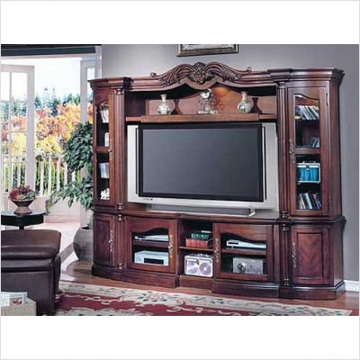 KEN15X The Kensington Entertainment Collection features a classic Italian Renaissance design. With a variety of breathtaking pieces and strong construction you can customize your living room to fit your individual needs. This beautiful collection is finished in a warm brown cherry, accented with antique brass knobs. Featuring storage drawers with full extension, ball-bearing glides, this collection is both functional and chic! Set Includes: -Kensington 48''-62'' X-pandable TV Stand -Kensington Expandable Bridge, Shelf, and Backpanel -Kensington Deluxe Curio Display Sides Features: -TV Stand opens from 48'' to 62'' wide to fit almost any size TV -Italian Renaissance design -Made of solid wood, and wood veneers -Warm Brown Cherry finish -Can lights with a 3 way dimmer switch -Doors have 1'' bevels -Traditional antique brass knobs and backplates -Cameo bale pulls on drawers -Top shelf has three settings to adjust to -Storage drawer has deluxe, full-extension, ball-bearing glides -Protective medium sheen top coat covers finish -English dovetail back construction Specifications: -TV Stand Overall Dimensions: 27 1/4'' H x 48''-72'' W x 24'' D -TV Stand Interior Width: 62'' W -Bridge Dimensions: 10'' H x 48-62'' W x 17 1/4'' D -Multimedia Storage Dimensions: 83'' H x 20.5'' W x 23 1/2'' D (each) -Overall Dimensions: 83'' H x 92'' - 116'' W x 23 1/2'' D Click here to see the X-pandable TV Stand in Action! White Glove Delivery Details: White glove delivery is different than a standard UPS, FedEx, or curbside truck delivery. The carrier takes a larger part in making sure the product you are purchasing makes it safely off of their truck and into your home. Service Includes: -Free In-Home Delivery, including up to 2 flights of stairs (4-15 steps = 1 flight) -Two-man delivery team to move items inside your residence to the room you choose -Delivery team will unpack and provide light setup work requiring basic tools* -Delivery team will also remove and dispose of all packaging *