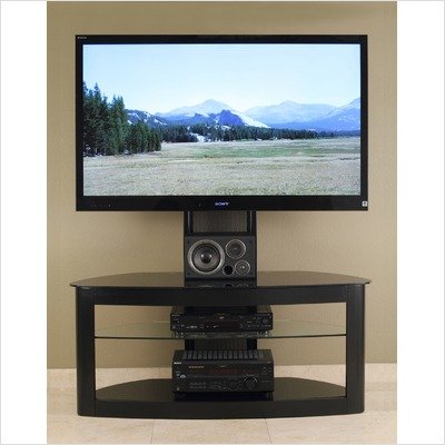 TD600B Features: -Stylish gloss black. -Accommodates most of the 35''-65'' plasma, LCD/ LED TV or not exceeding 150 lbs. -Adjustable flat panel TV universal mounting system with 12 tilt up or down and 15 pivot left or right. -Constructed with engineered hardwood frame and heavy gauge powder-coated scratch resistant steel in black finish. -Curved front tempered safety glass top and bottom shelves with high gloss black finish. -Adjustable clear tempered glass middle shelf is removable for extra tall audio video components. -Cable management system to hide wires & cables. -holds at least 4 audio video components and a center channel speaker. -Contemporary design compliments any room decor. -Easy to assemble. Dimensions: -Overall: 56.3''H x 50.2''W x 22''D. -Top shelf: 30''W x 19''D. -Adjustable middle shelf: 30''W x 18''D x 7''H. -Bottom shelf: 30''W x 19''D x 8.5''H. -Maximum supported mounting interface: 700 mm (W) x 400 mm (H). -Top shelf weight capacity: 120 lbs. -Middle shelves weight capacity: 80 lbs. -Bottom shelf weight capacity: 120 lbs.