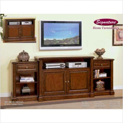 Entertainment-345-30 Features: -Entertainment center. -Hampton collection. -Dark antique cherry finish. -Solid wood and MDF construction. -Left and right each features single drawer with metal glides and shelf. -Assembly required.