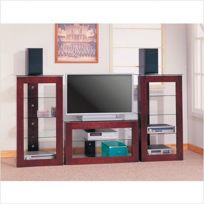5795 Side Shelves Sold Separately Features: -Stafford TV Stand. -Contemporary style. -Warm Dark Brown finish. -Two glass shelves. -Dimensions: 23'' H x 41'' W x 24'' D.