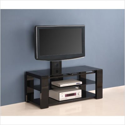 CS48EC1BL This luxurious 4-in-1 TV stand with removable mount features a modern design with spacious shelving, providing ample room for all AV components and TV s up to 52 in. Powder coated steel frame and thick beveled tempered safety glass adds to the distinctive look while offering a sturdy and unique design. Stool Features: -4 different possible configurations of your TV on the stand/mount: TV mounted on stand, TV mounted on wall, TV on stand, TV on stand and another TV mounted on a different wall. -Removable universal wall mount can hold up to 165 lbs.. -Accommodates most flat-panel TVs up to 52 in.. -Maximum mounting hole pattern is 470mm top/bottom and 870mm left/right. -Mount tilts +/- 15 degrees and pivots left/right. -Wire management maintains a neat appearance. -TV stand can hold up to 250 lbs.. -Solid Hardwood Sides. -Spacious shelving for all AV components. -Thick 8mm beveled tempered safety glass. -Black, powder coated metal frame offering a scratch resistant finish. -All panes of tempered safety glass are silk screened with a black coating. -Dimensions: 42 in. W x 20 in. D x 50 in. H. -Ships Ready-To-Assemble- no tools necessary. -Assembly instructions with online support and toll-free number available.