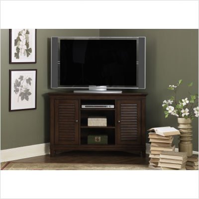 481-52 Features: -Corner TV stand - optional hutch also available. -Amaretto finish. -Poplar solids and figured cherry veneers construction. -Wire management provisions. -Antique pewter knob hardware. -Two adjustable removable shelves. -Two doors and three adjustable shelves. -Optional hutch has shutter door design. -Liberty Furniture provides one year warranty. Specifications: -TV space: 30'' H x 45'' W x 15'' D. -Overall TV Stand Dimensions: 33'' H x 52'' W x 20'' D. -Overall Hutch Dimensions: 46'' H x 54'' W x 18'' D.